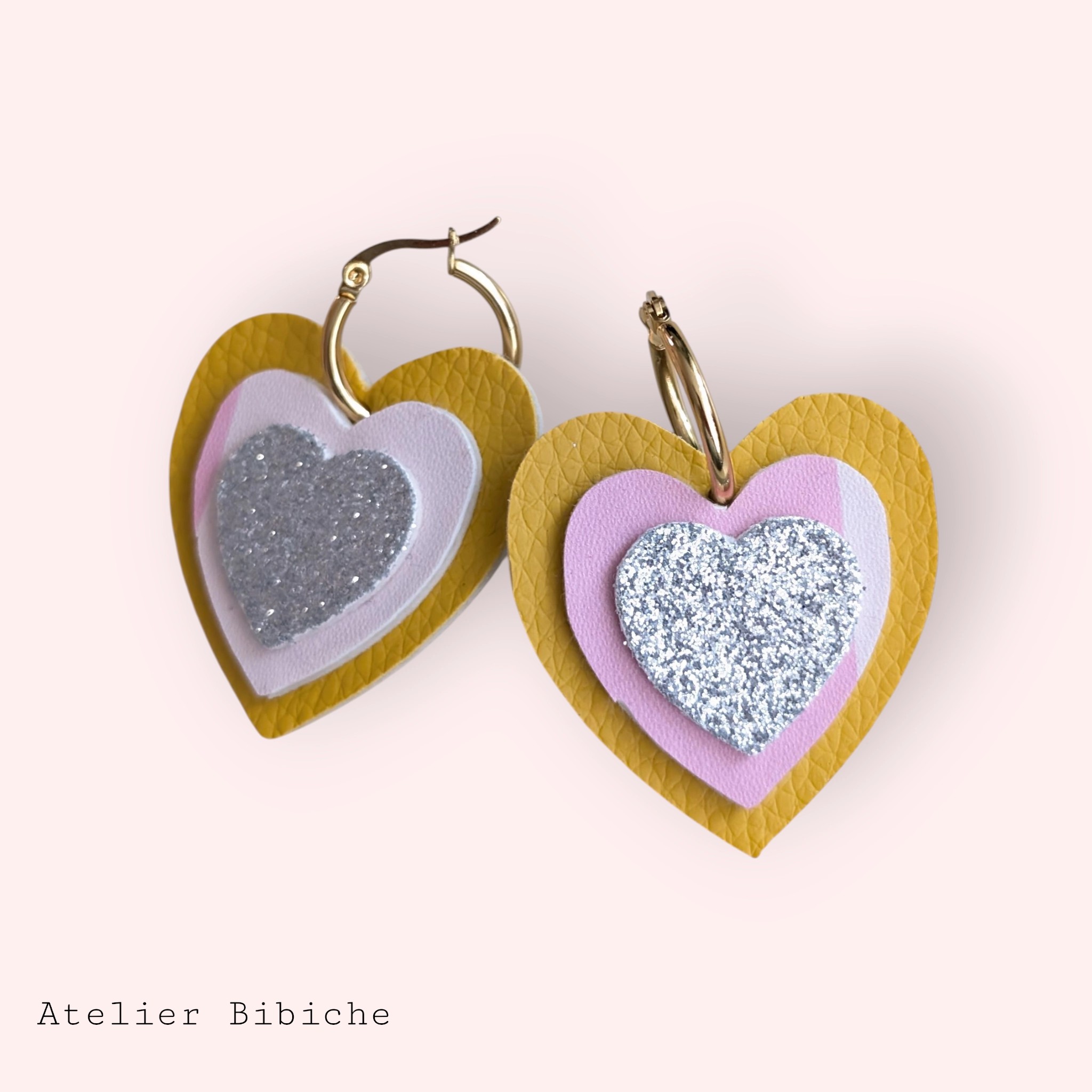 Adoptez un style glamour et pop avec ces boucles d'oreilles créoles cœurs faites main !