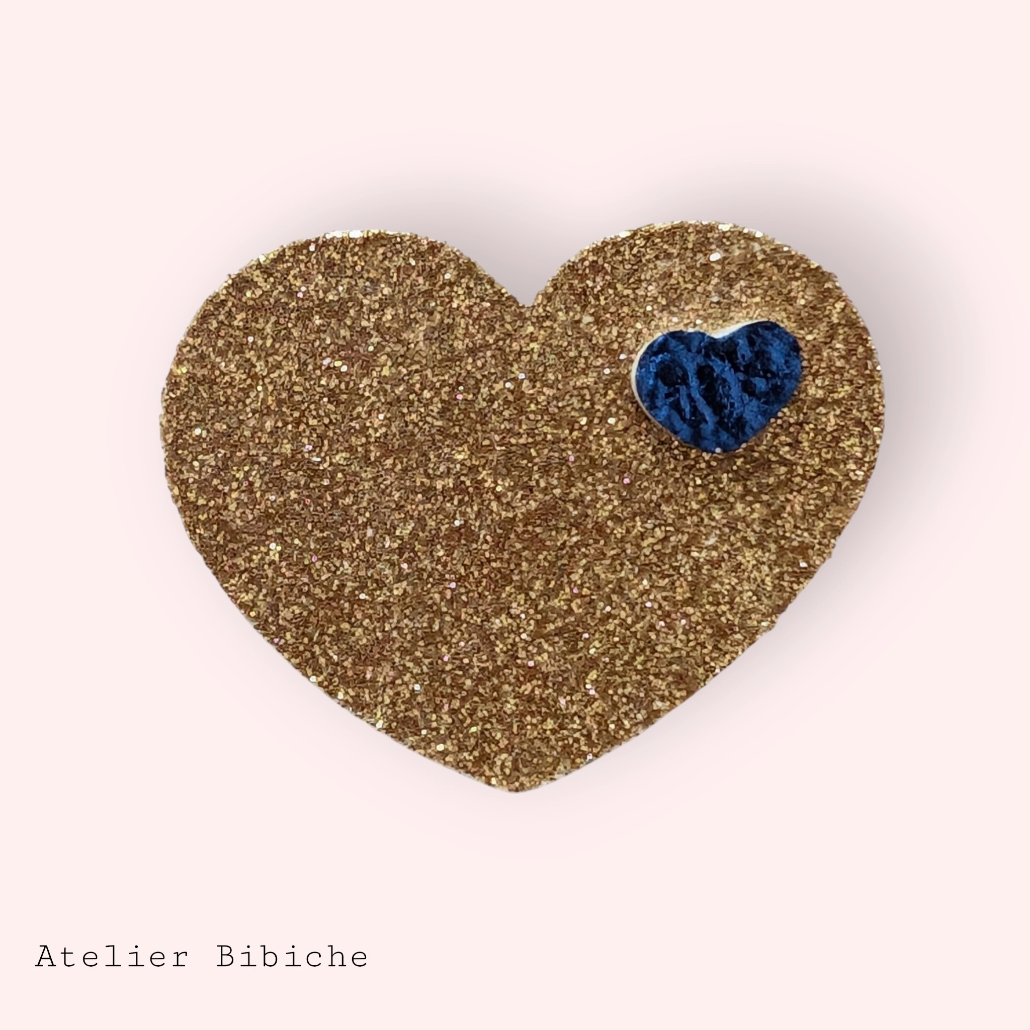Adoptez un chic intemporel avec une touche d'éclat grâce à notre Broche Cœur "Or Pailleté & Marine".